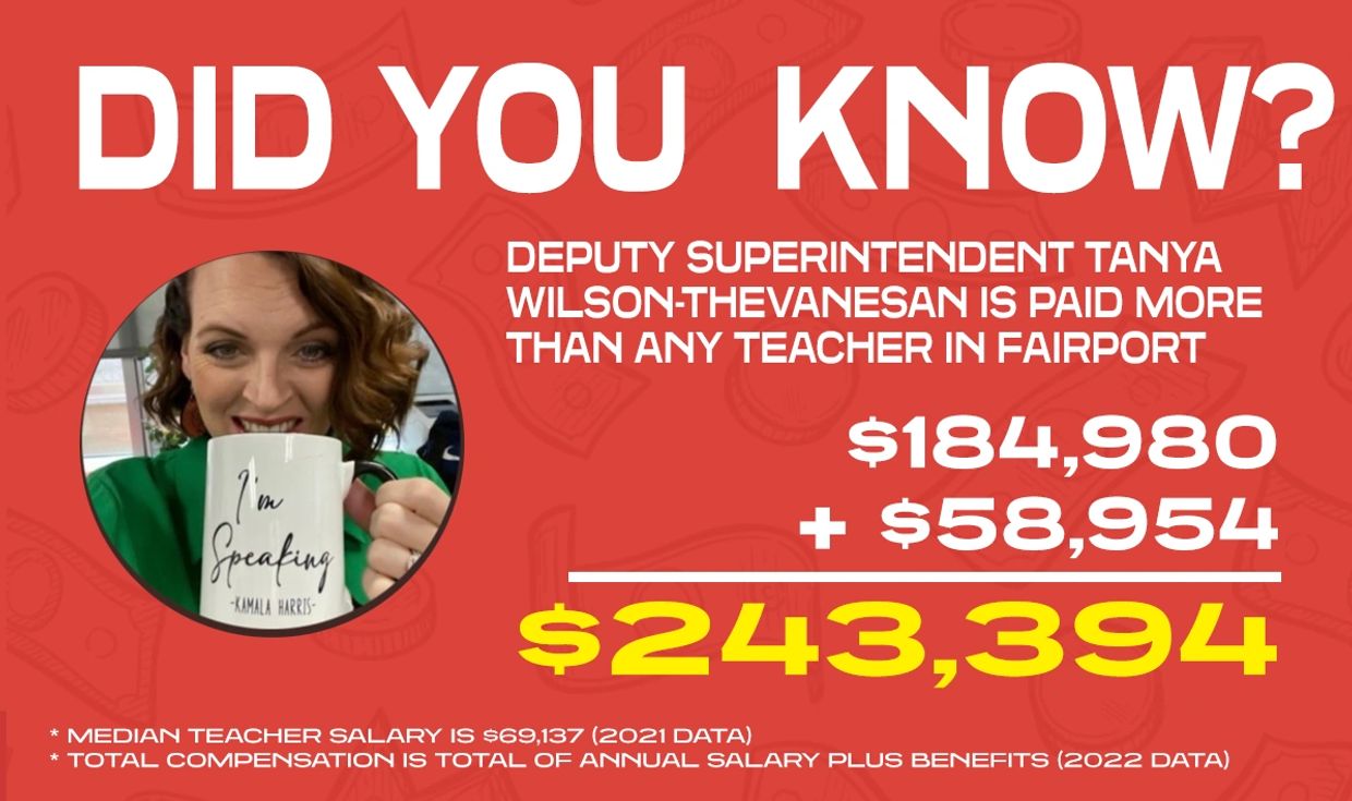 Tanya is one of the highest paid employee in Fairport with annual base salary of $188K plus benefits.